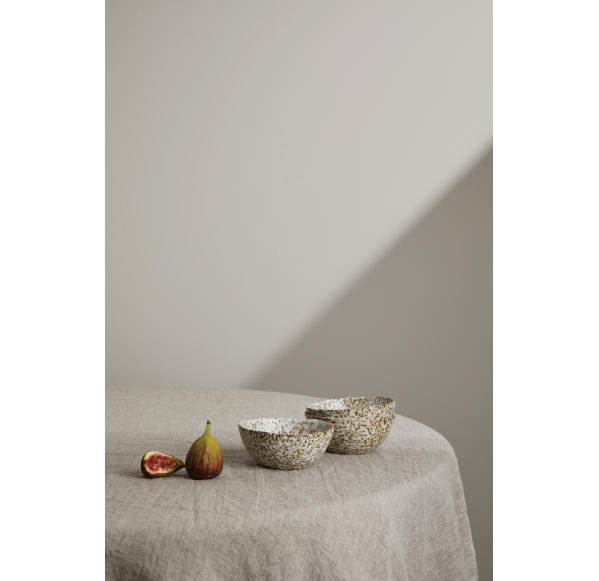 Three-piece stoneware bowl. With its unique, organic uneven shapes and hand-glazed finish, each piece is one-of-a-kind and sure to impress your guests. Crafted from durable stoneware, it is designed to last and withstand the wear and tear of daily use. These bowls are dishwasher-safe for easy cleaning and maintenance. Not suitable for use in the microwave or oven.