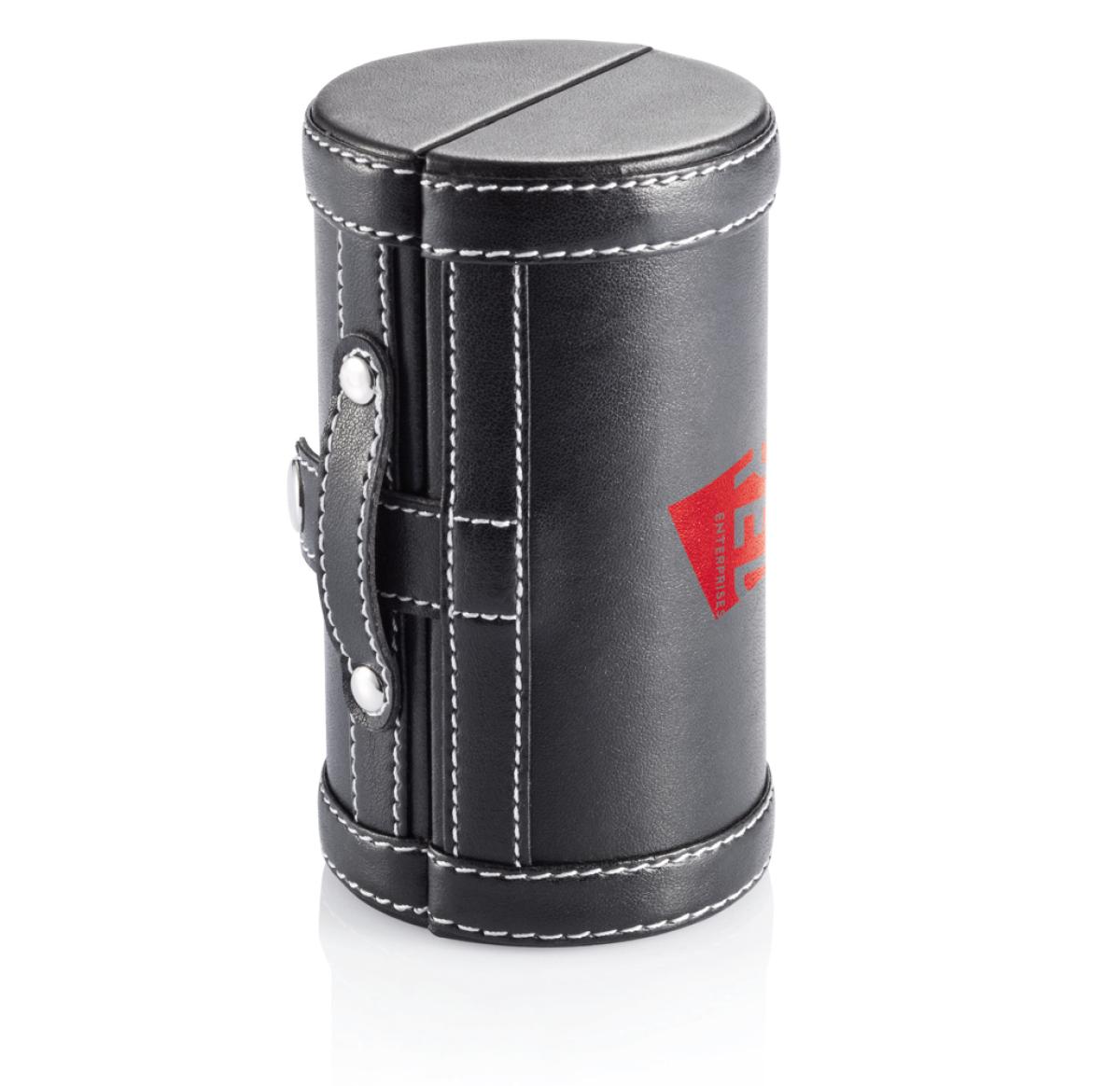 Imitation leather case, including wooden shoe brush, neutral polish, soft cloth shine polish, shoehorn and one pair of black shoelaces.