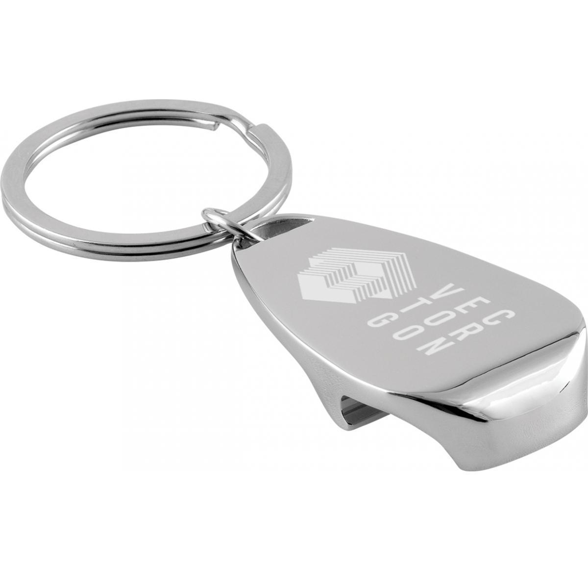 Bottle opener keyring in gloss chrome with split ring fitting, laser engraved with your logo in superb detail. Optional gift box also available.