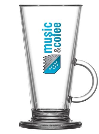 The stylish plastic 8oz Latte glass is moulded in unbreakable Polycarbonate and can be printed in up to 4 spot colours.