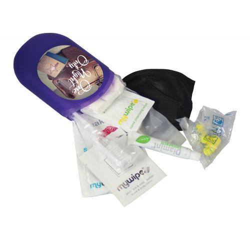 Our Wash Kit for ladies has everything needed to keep the recipient looking and feeling their best. Contents: Tissues, eye shades, ear plugs, stain remover, hair band, 2 x safety pins, vanity kit, make up remover, moisturiser, shampoo, toothpaste, toothbrush, deodorant wipe, shower gel, 2 x paracetamol