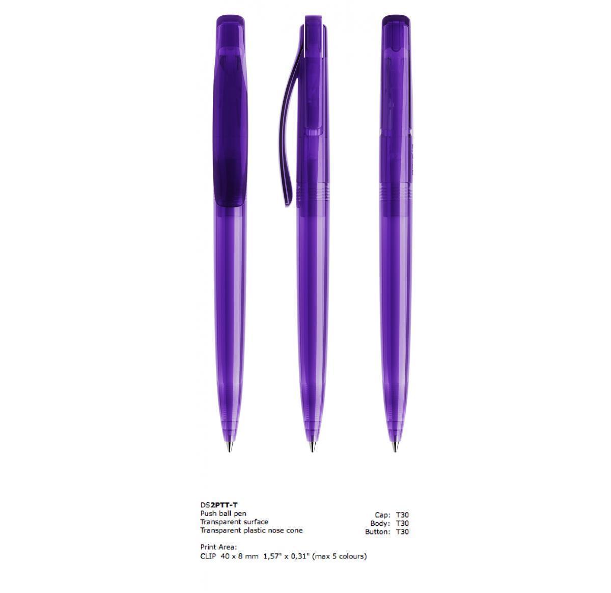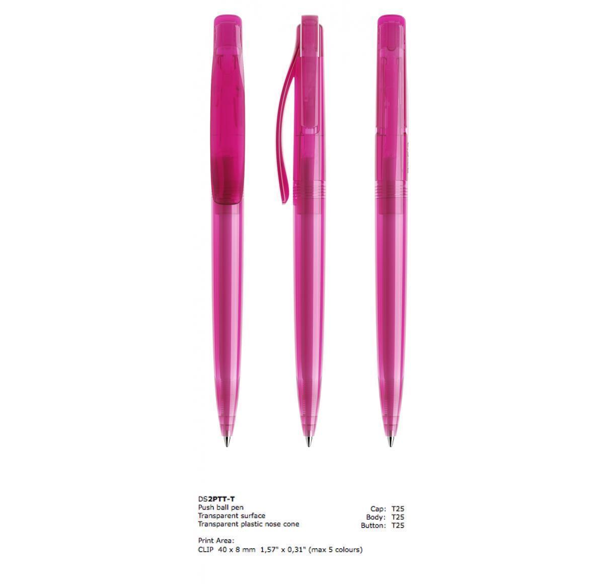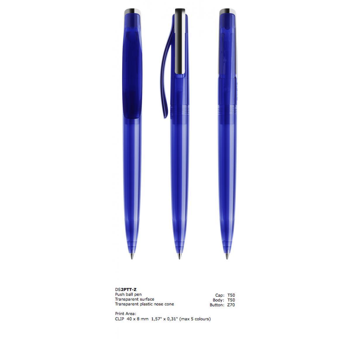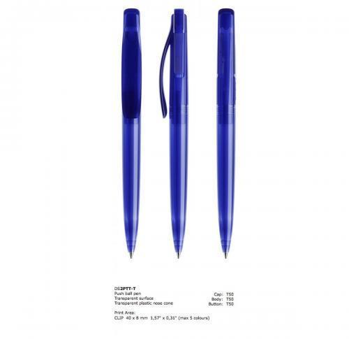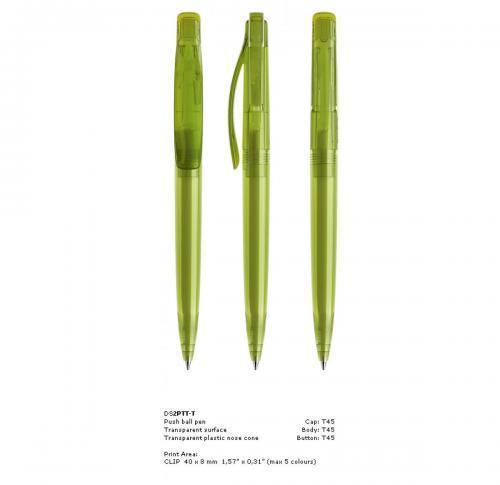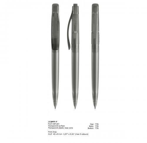 DS2 is a versatile, push button ball pen offering a great choice of mix and match colour combinations. The large clip provides an extensive print area. 6 finishes available and up to 22 colours. Metal button option available with laser engraving. Metal button and or nose cone available as an optional extra.
