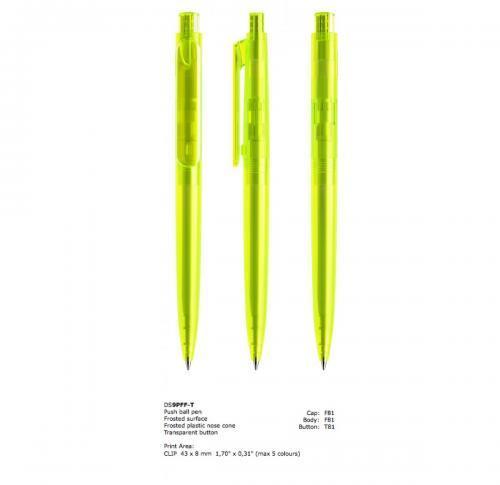 PRODIR DS9 PUSH BUTTON BALL PEN. Its form varies from the roundness of the tip to the oval-shaped push button. The large printing surface on the clip, vivid colour range and high-quality Mix & Match options provide lots of opportunity for creative individualisation. Available in 2 finishes 20 colours.