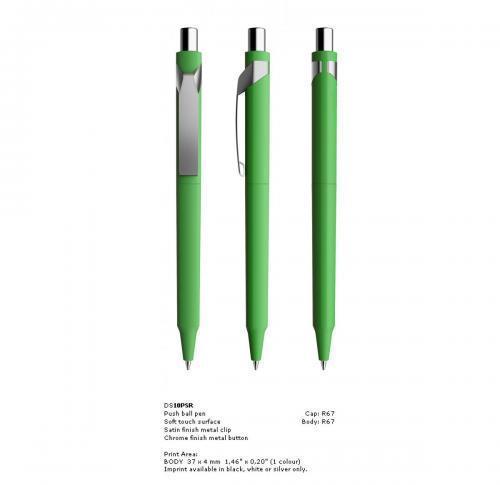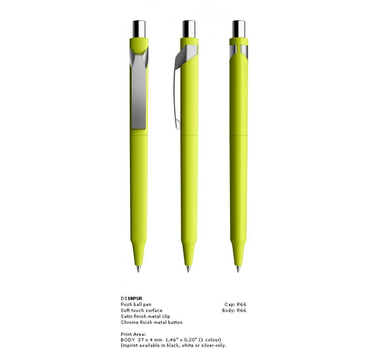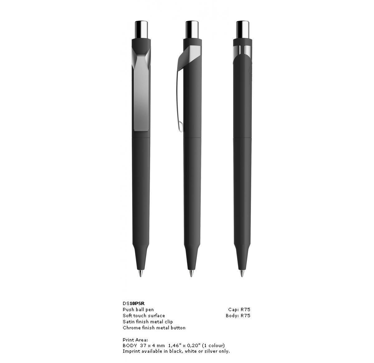 The Prodir DS10 is a high-quality writing instrument makes its impact through the contrast of its well-designed metal clip to the velvety Soft Touch surface. Selective, contemporary colours and a chrome finish or satin finish push button round out the very high-quality profile. Honoured with the IF Product Design Award for outstanding design. Available in 9 colours.