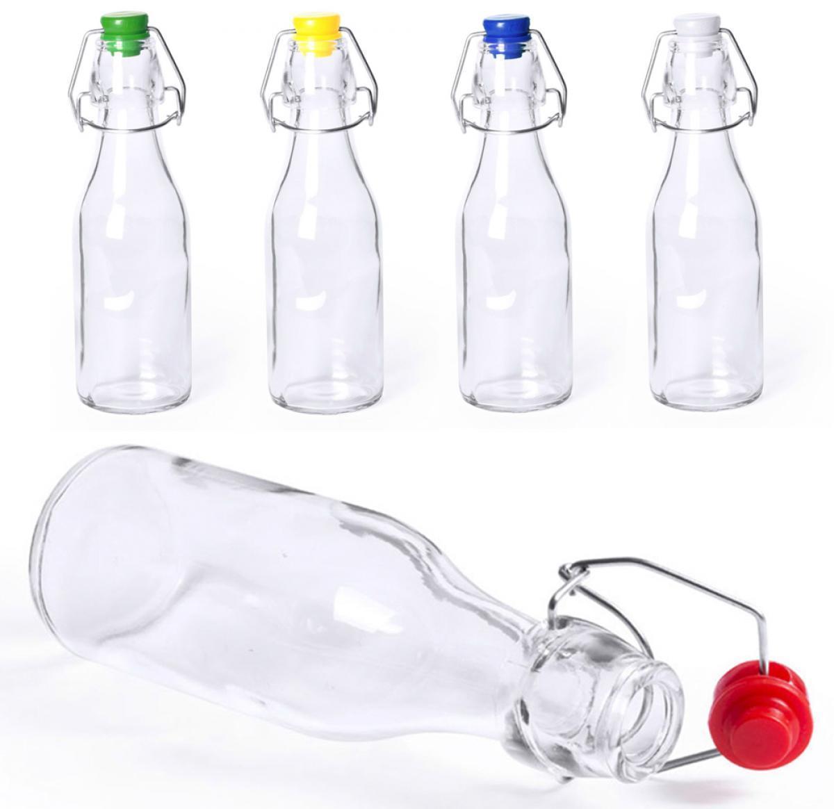 Tall glass drinking bottle with Grolsch style metal bail lid closure. 260ml capacity.