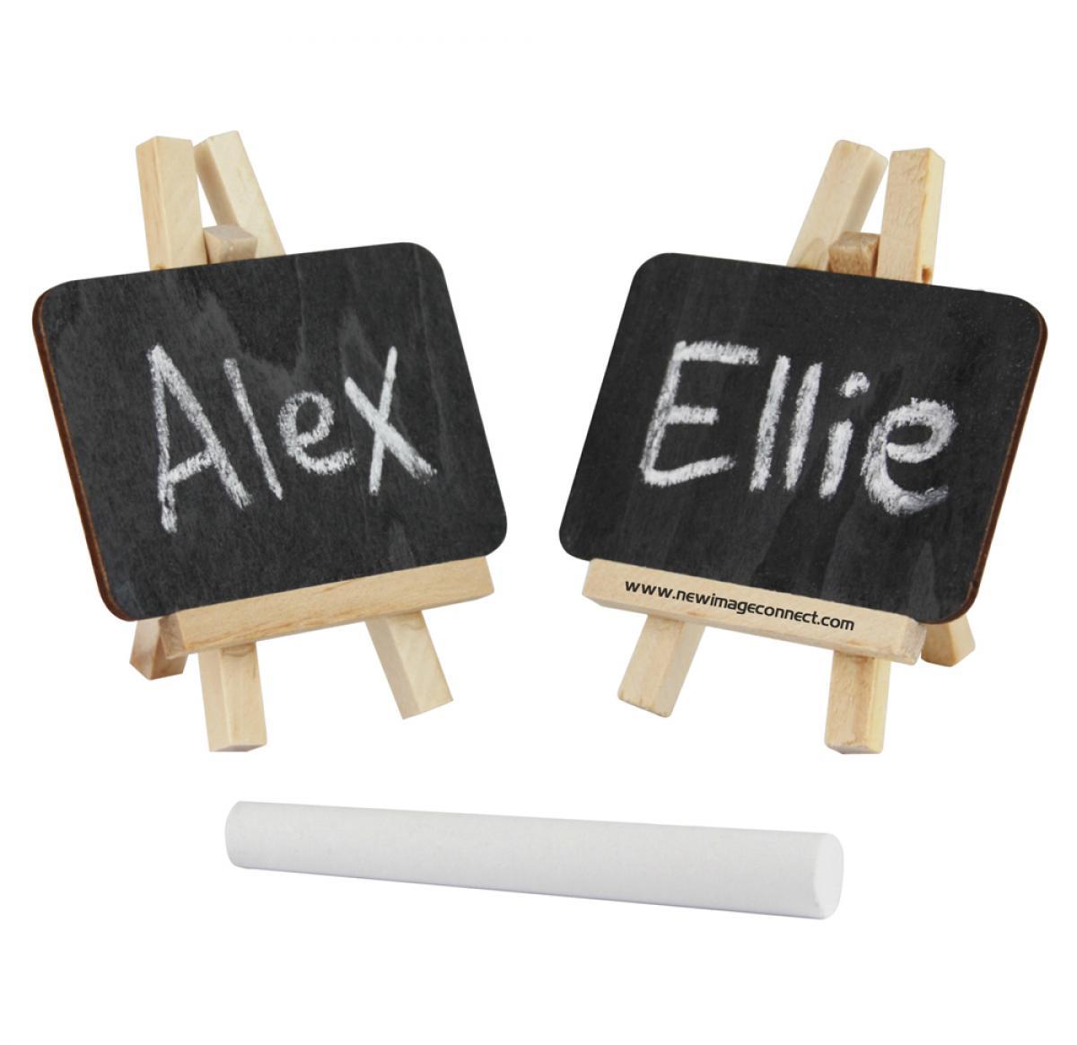 Set of two Mini wooden easel with a chalkboard for place names or parties. Supplied with a piece of white chalk.