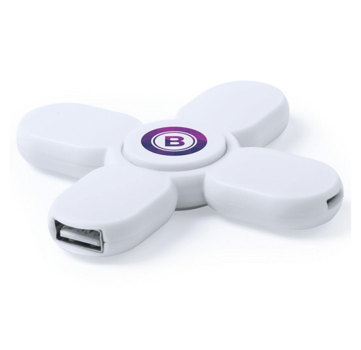 Anti-stress fidget spinner including three USB ports. This item is ideal for students and for the office, mixing functionality with stress relief.