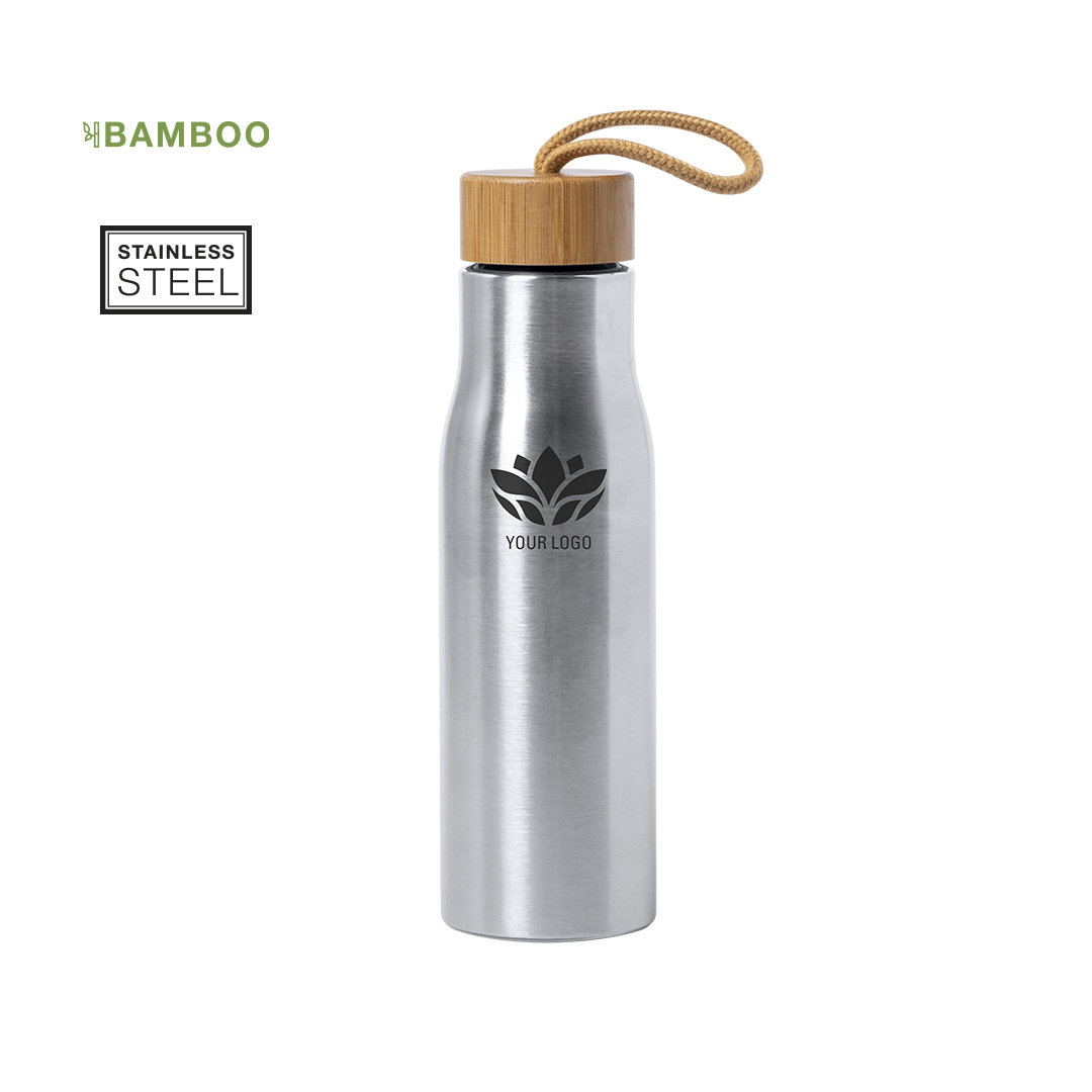 600ml, nature line bottle. Stainless steel body and bamboo cap with carrying strap. BPA free and presented in an attractive eco-design box.