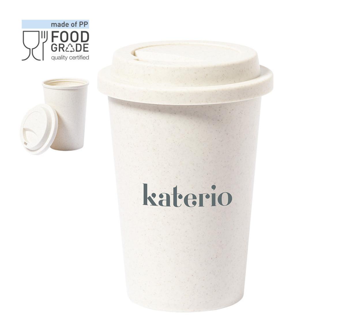 Cup made in veined PP, with matt finish and 450ml capacity. Lid with dispenser and Food Grade certification, guaranteeing safety when food is in contact with the material used to manufacture the product.
