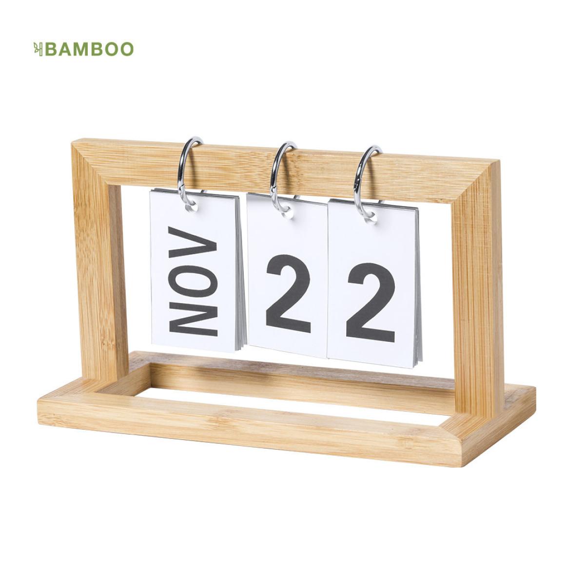 Nature line, perpetual calendar: no need to change the calendar every year any more, with all the environmental benefits this entails. Made of bamboo, with chrome-plated metal rings. Easy-to-read typography and specially designed for laser engraving.