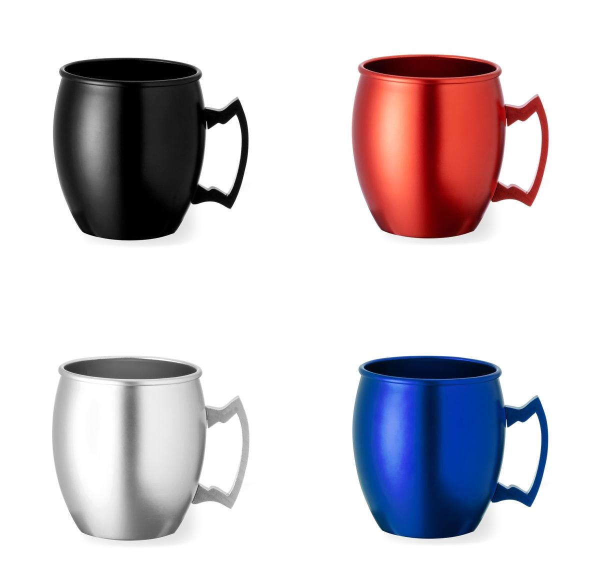 540ml capacity mug made of aluminium. With innovative handle design and available in a wide range of metallic colours. Presented in an attractive individual kraft design box.