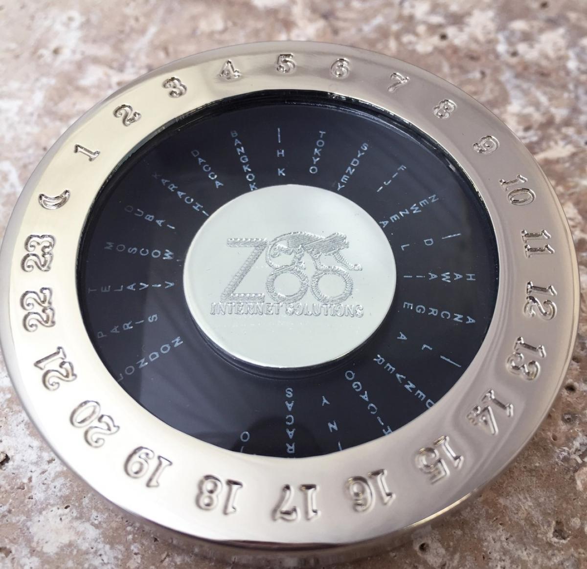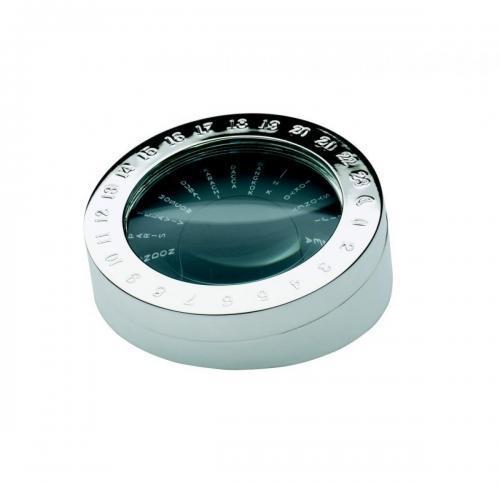 Silver Plated Metal Desk World Time Convertor Paperweight with detachable magnifying glass. Gift boxed.