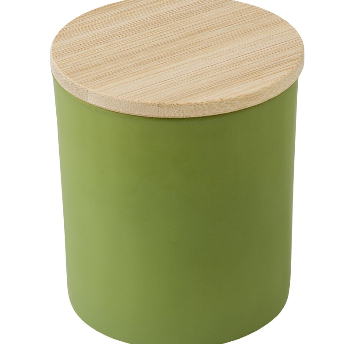 Glass candle with plant-based wax and bamboo lid - captivating scents for every glass colour: cinnamon (red), vanilla (white), sandalwood (black), and jasmine (green). Enjoy around 33 hours of burn time. Individually packed in a white tube for eco-friendly gifting. Illuminate your space sustainably and stylishly.