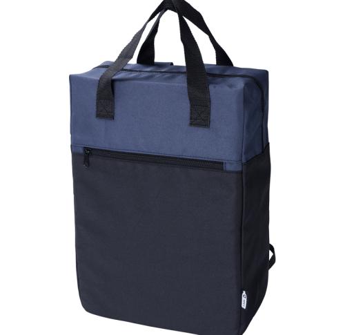 RPET polyester backpack with one main compartment, a zipped front pocket, adjustable shoulder straps and carry handles.