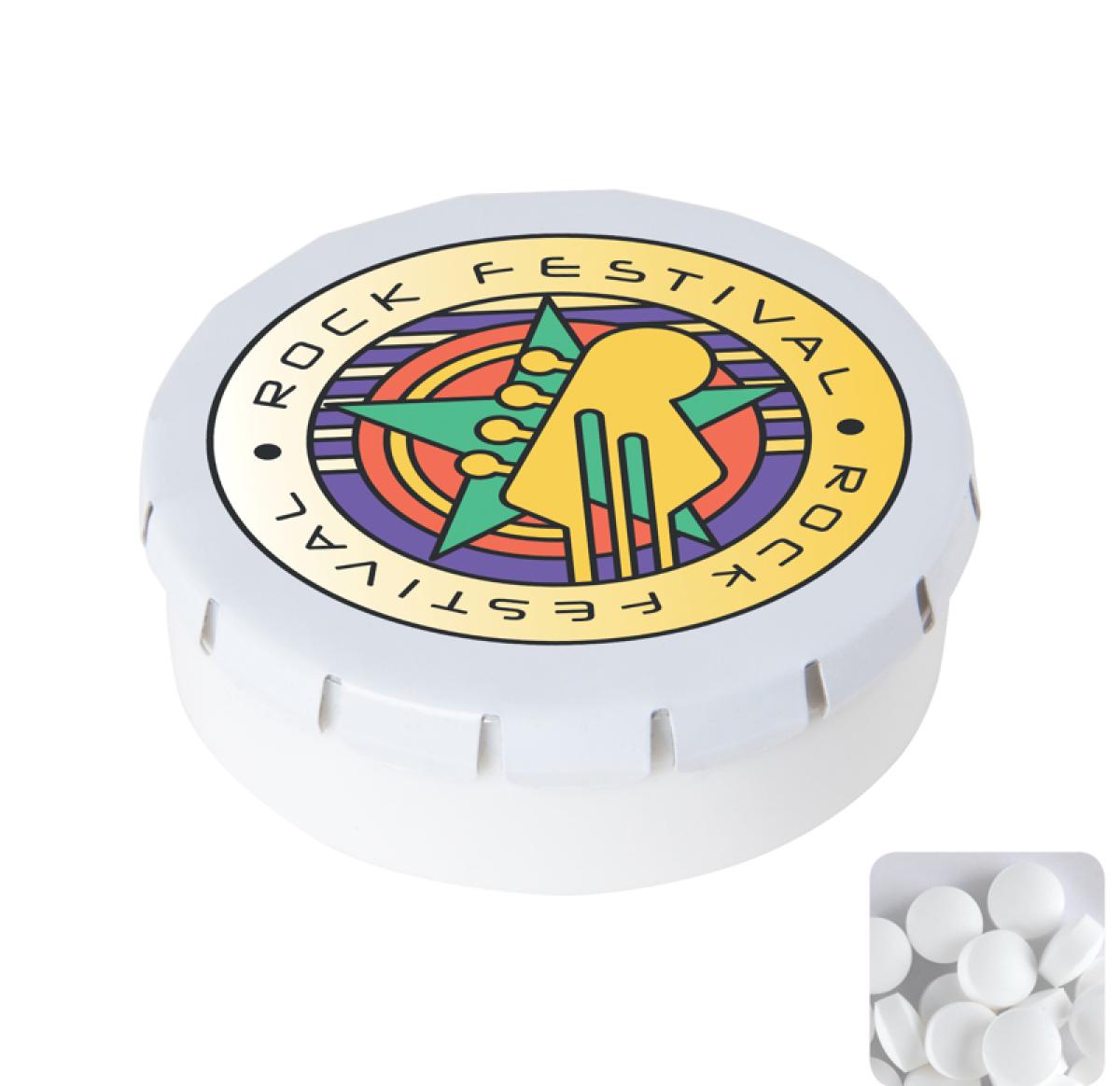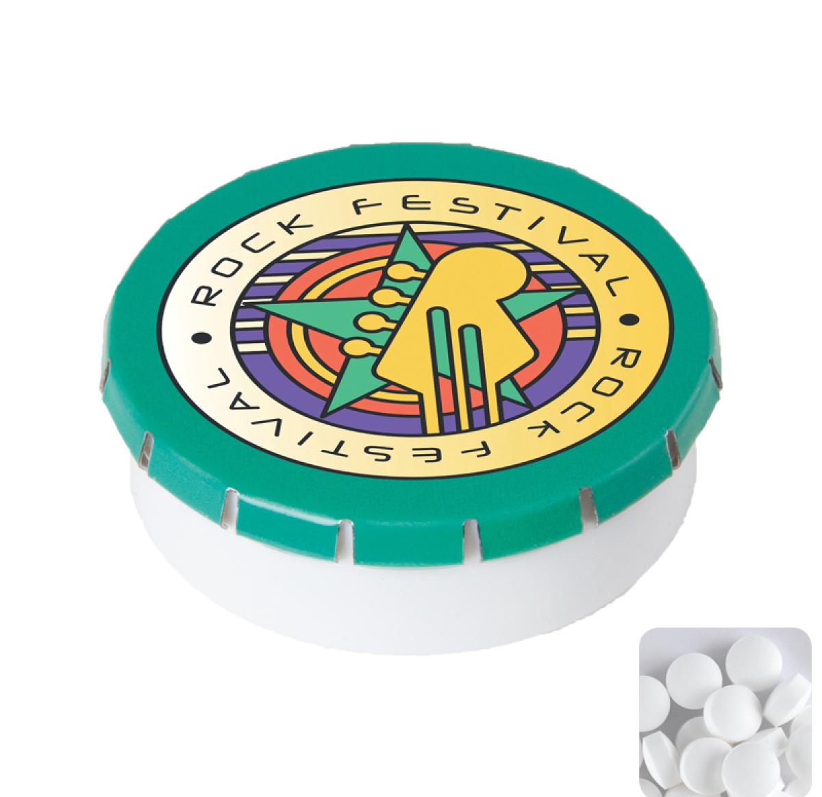 Branded Round Click Plastic Pots With Sugar Free Mints
