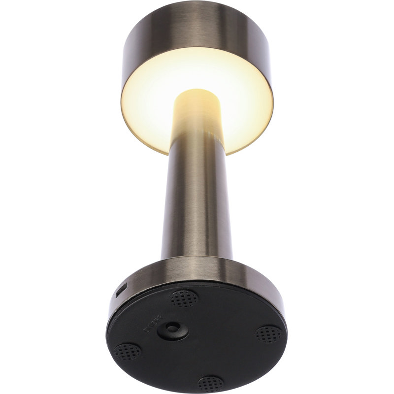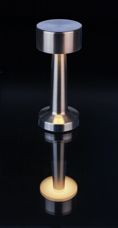 Touch control table light with 24 LEDs and three light modes (white, neutral, warm) controlled by a touch sensor on the top. Includes an 800 mAh battery and Type-C charging with a 1-meter cable. The lamp is dimmable per light mode and has an on/off button on the base. Individually packaged in a brown cardboard box.