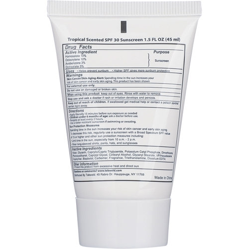 Sun lotion tube filled with vanilla-scented sunscreen. Dermatologically tested with a shelf life of up to 3 years after the production date.