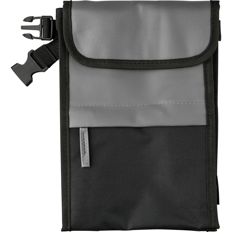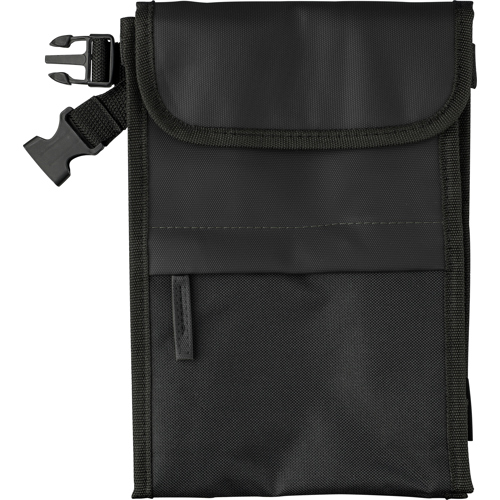 RPET (600D) polyester cooler bag with PU coating for water repellency. Includes a front zipped pocket, top compartment, side mesh pocket and adhesive closure. Designed with a carrying handle and shoulder strap. Capacity 5 litre. Includes an rPET label