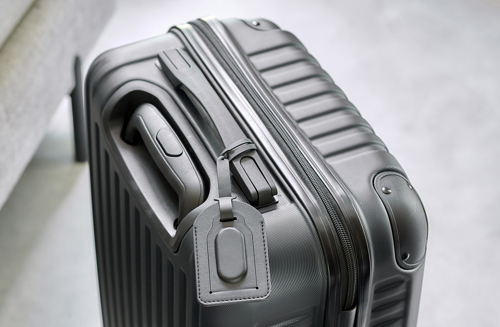 Recycled PU luggage tag. Includes a built-in Apple FindMy tracker with space for a personal information insert inside. Individually packaged in a kraft paper box.. Uses "Impression" as the device name and includes the Impression logo for ID registration.