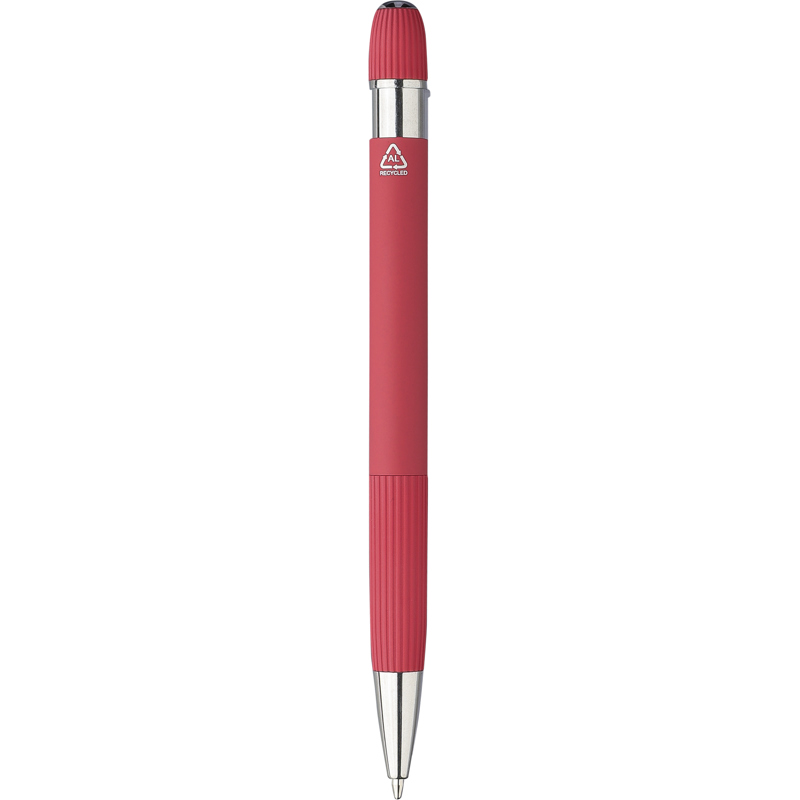 Recycled aluminium ballpen with a rubberized finish. Includes a laser-engraved recycled logo.