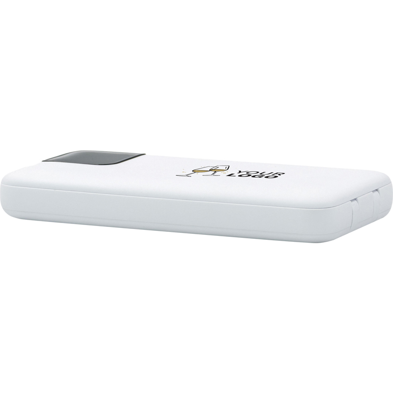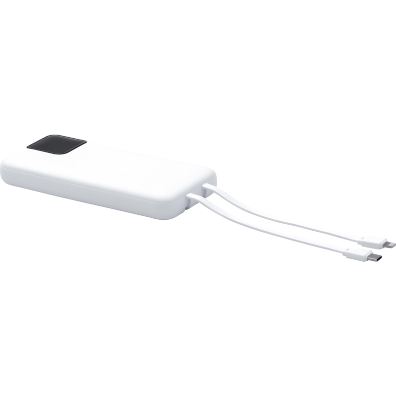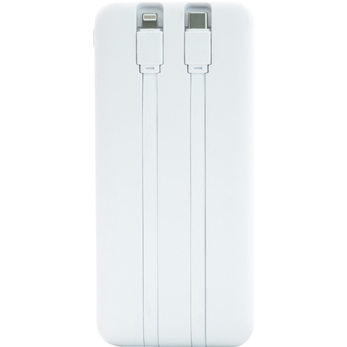 BrandCharger Powercharge 10000 Eco is a 10000  mAh power bank made from recycled ABS with built-in Lightning and Type-C cables. Features a 22.5W USB-A port with PD 3.0 fast charging, smart safety chip, and USB-C and wireless compatibility. Eco-friendly and reliable.