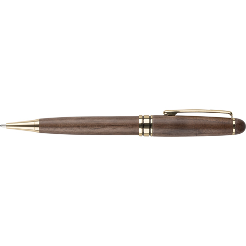 Walnut and brass twist action ballpen. Supplied with German Dokumental blue ink, supplied in a maple wooden box and brown box.