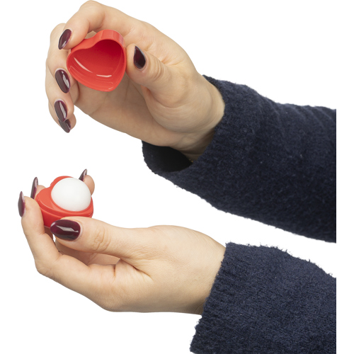 Heart shaped case with 5.5g lip balm with SPF15 protection in vanilla scent.
