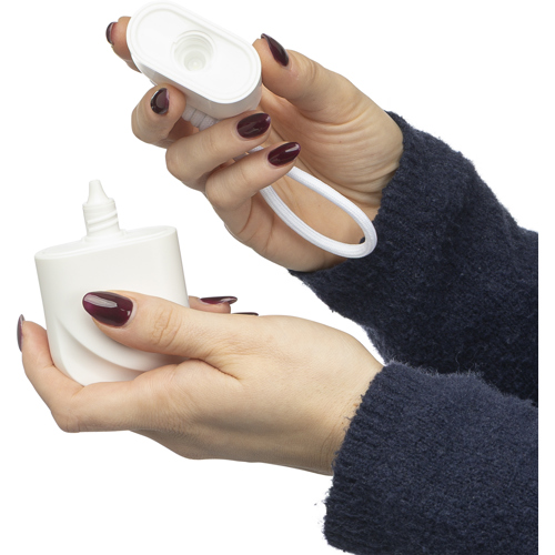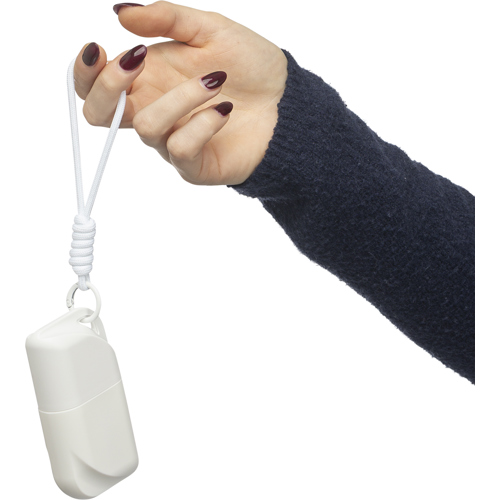 Sun lotion with SPF50 protection and matching colour polyester wrist cord with metal hook.