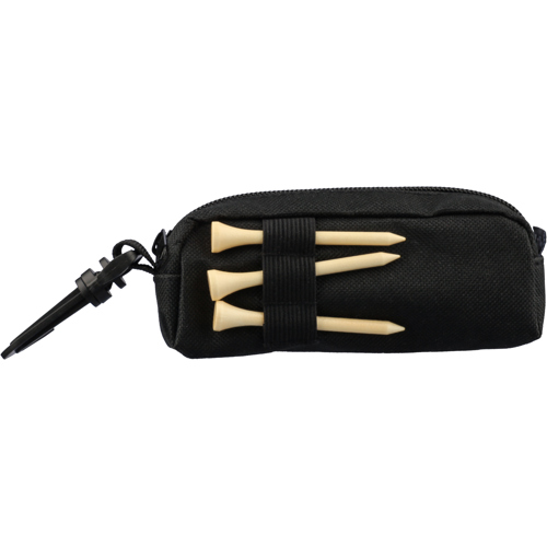 RPET golf set in a zipped pouch with belt clip, contains 3 practice golf balls and 3 beechwood golf tees. Ideal for promotional use and tee-off practice.