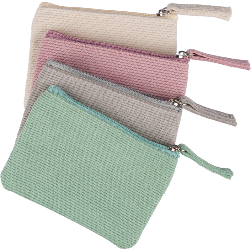 Key wallet with zip in a corduroy material.