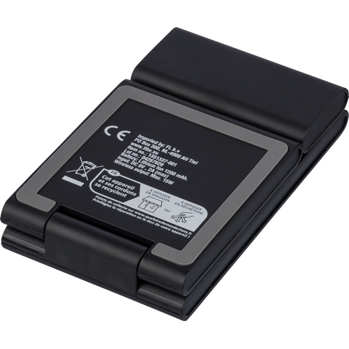Recycled magnetic charger for phone (15W), AirPods (5W), and iWatch (2W). Ultra-flat with fold-up stand. Input: 5V/3A or 9V/3A. Recycled logo. Packed in a brown box.