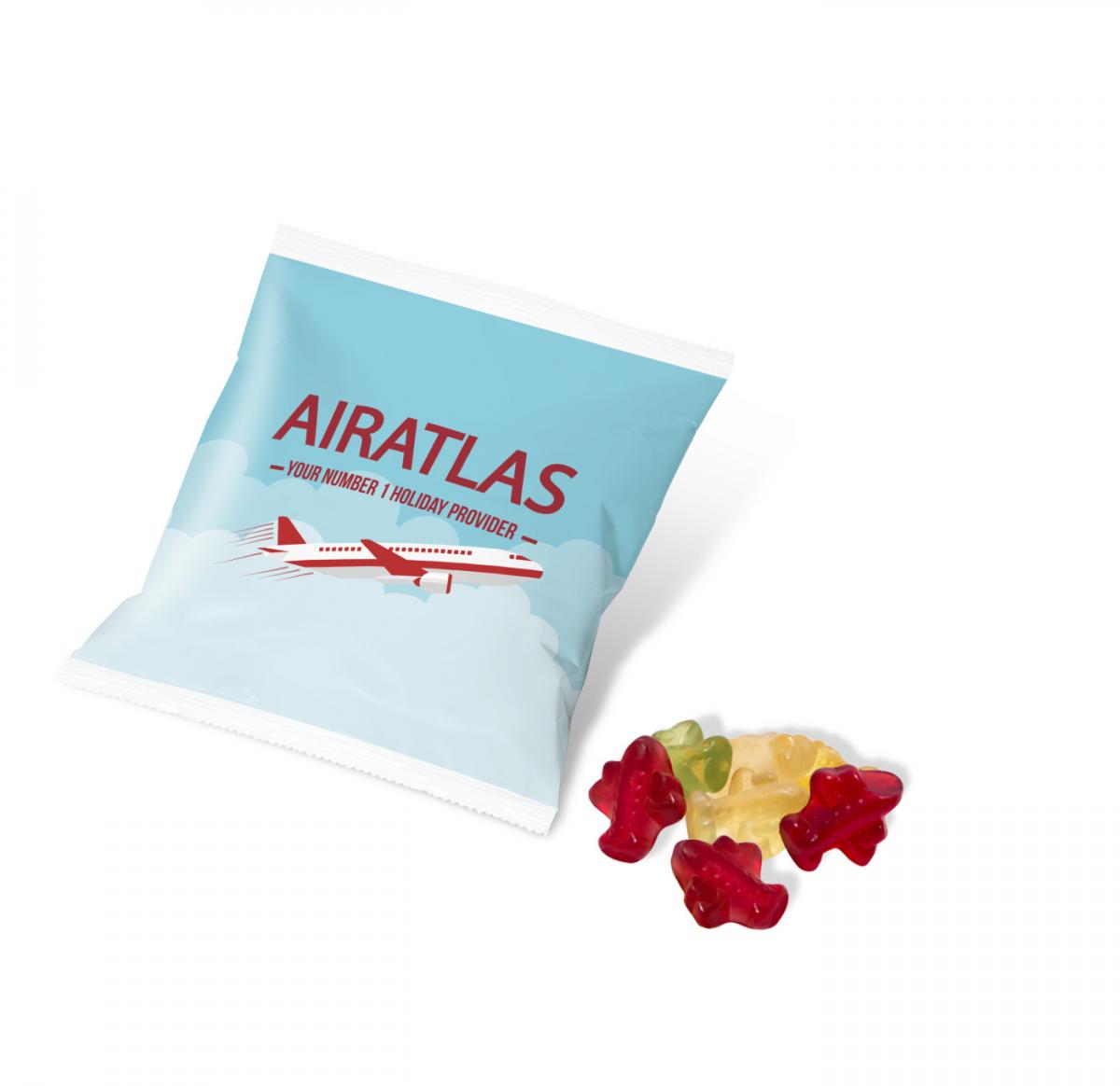 Flow wrapped Kalfany Fruit Gums. Branded with a full colour digital print to the film.*White Film Only for QTY up to 2000.**Clear & White Film Available for QTY of 2000+.*