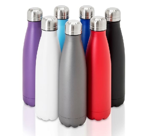 Stainless Steel Satin Finish Thermos Bottle 460ml - Now Available With All Over Pattern Or Colour Matched From 250 Units