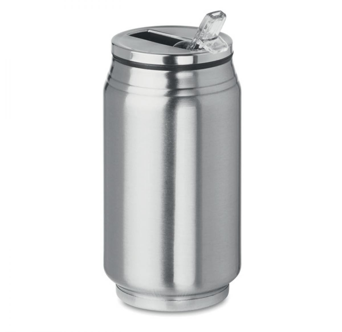 Stainless Steel Insulated Tumbler with flip straw 250ml - looks like a coke can.