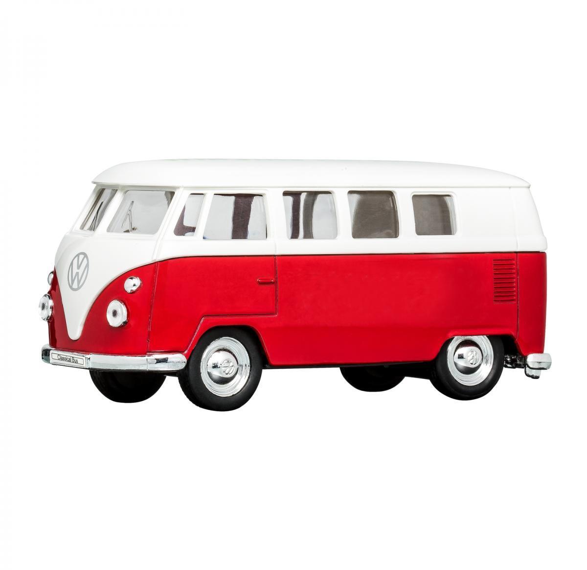 Model car. The VW Bus T1, also called Bulli, is a car that has shaped the VW brand as much as the Beetle. The development of van goes back to the Dutch Ben Pon senior, whose suggestions the designers took up and turned into an incomparably successful concept. Our model is a true replica, licensed by the motorists. The VW Bus T1 is a memory to touch, collector's item for classic car lovers and eye-catcher for every desk.
