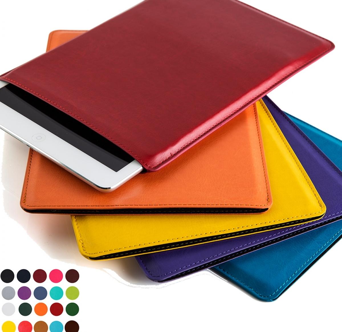 Tablet Sleeve with waxed edges to suit any shape or model finished in soft touch Belluno PU with a real leather look and feel. Belluno is available in a choice of 20 colours each with a unique colour change when embossed, making your branding distinctive and accurate even on fine detail. Edges are waxed for a quality look choose for matching or contrasting wax finish.