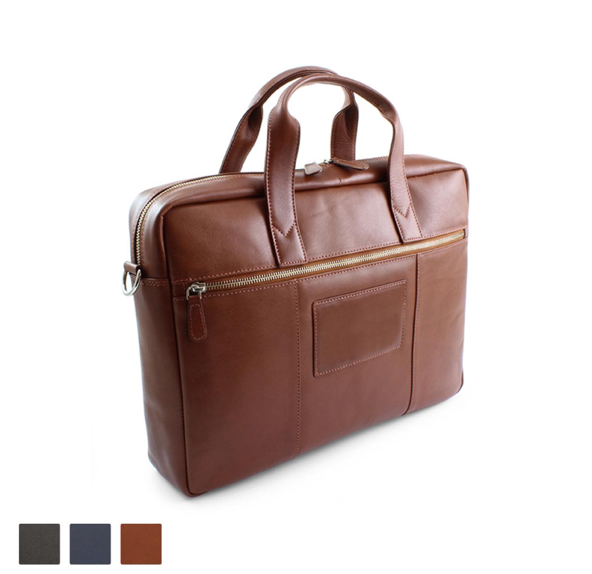 Accent Sandringham Nappa Leather Commuter Bag. Available with matching or contrasting stitching, black or coloured lining, mix and match for a bespoke look. Ideal for debossed personalisation. Product features include Genuine Nappa Leather, Two carry handles, Detachable shoulder strap, Two open pockets to the exterior for easy access, Internal Padded pocket to hold your laptop or tablet with Velcro strap to secure, Business card pocket and two credit card slots to the interior, Mobile phone pocket, Chrome quality zip with leather zip pulls.