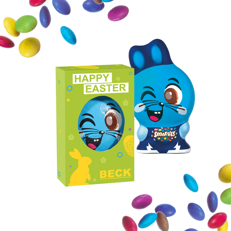 • Contains foil wrapped chocolate Smartie bunny
