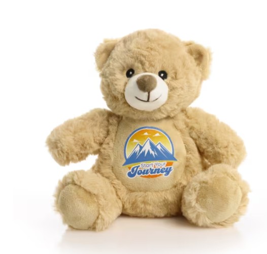 Unlike traditional plush bears with removable clothing, Catherine features a direct-to-fabric (DTF) print on her tummy, ensuring a permanent, high-quality brand message that won’t fade or be removed. Perfect for brands looking for a long-lasting promotional impact, she’s also available in a smaller 17cm version.