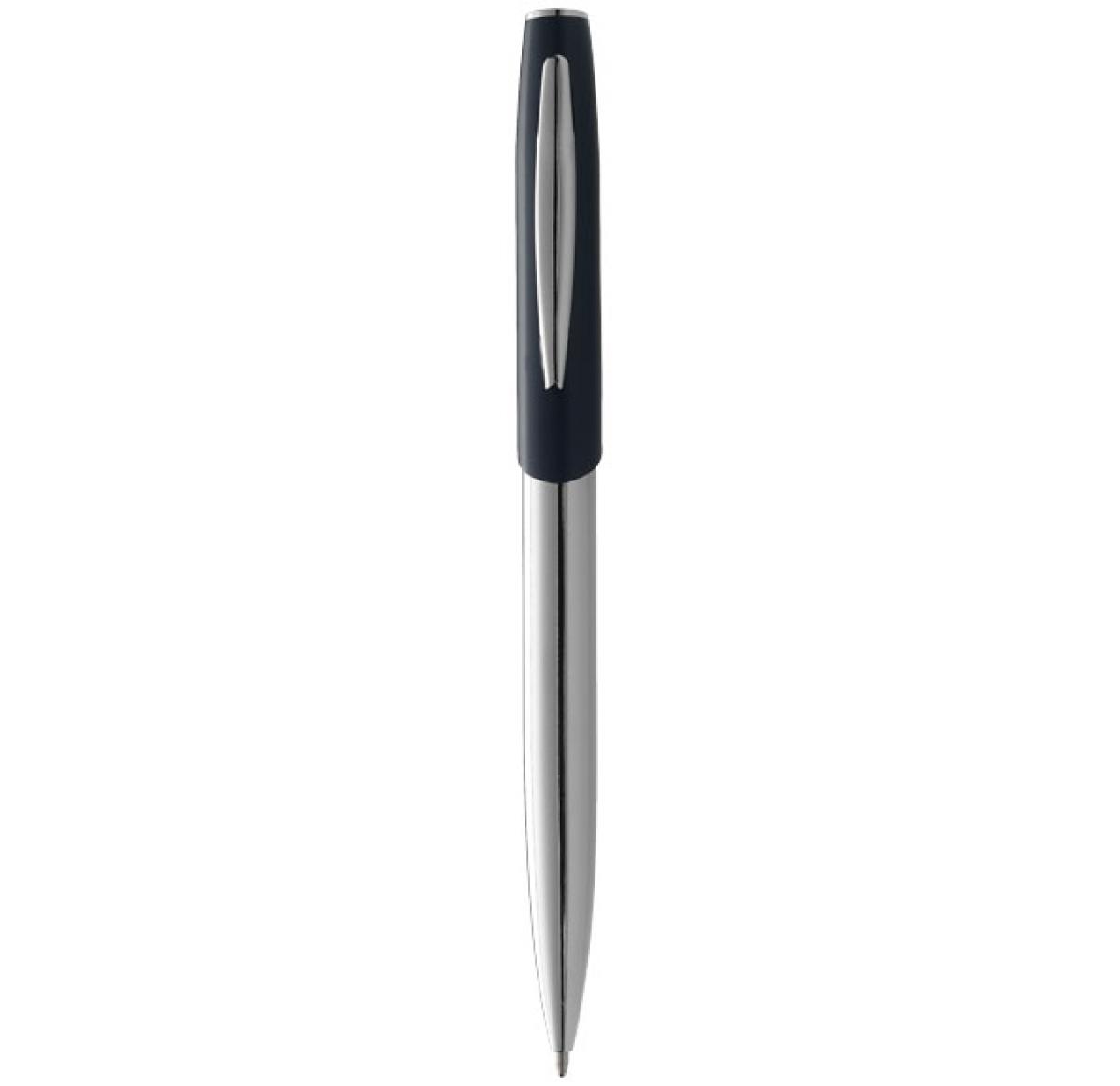 Geneva ballpoint pen. Sophisticated silhouette ballpoint pen featuring a matte upper barrel with shiny chrome lower barrel and matching chrome accents. Incl. velvet pouch and Avenue gift box (size: 16 x 2.5 x 1.5 cm). Metal.