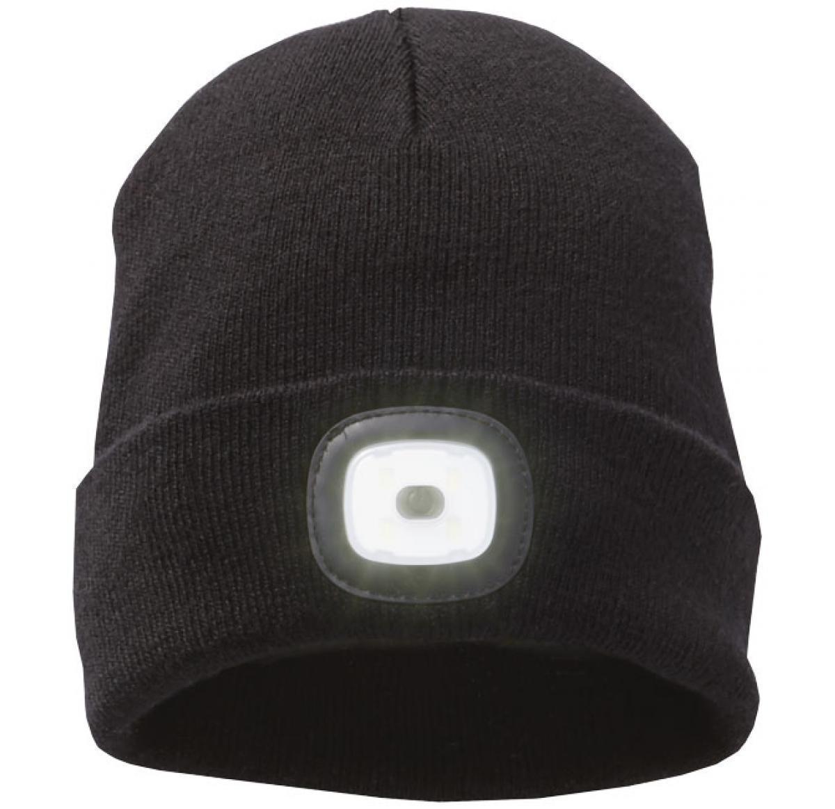 Double layered beanie.Turn back cuff.Crown darts for shaped fit.Removable & rechargeable headlight.