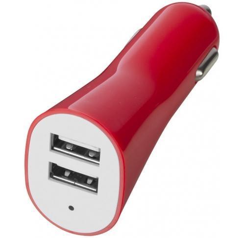 Pole dual car adapter. Dual plug adapter. Plug into power outlet to charge personal devices. USB output: 5 Volts / 2.0 Amps. Input: 12V-24V. Suitable for cars and trucks. ABS plastic.