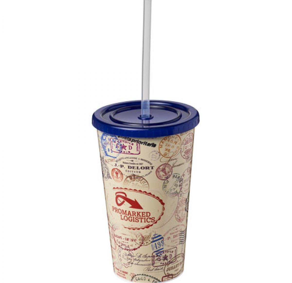 Brite-Americano® 350 ml double-walled stadium cup. Double-wall insulated tumbler. Tumbler features a full colour wraparound design moulded to the product, making it long-lasting and durable. Supplied with a flexible silicone straw. Volume capacity is 350 ml. Made in the UK. PP Plastic, Silicone.