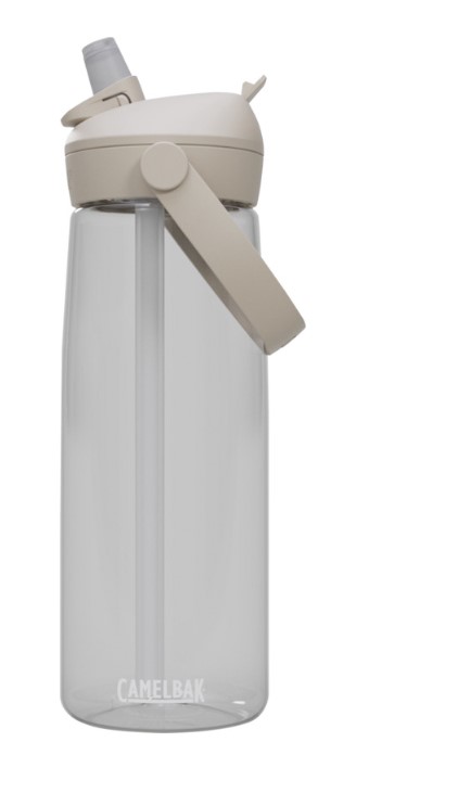 The Camelbak® Thrive Flip Tritan Renew water bottle is the successor of the popular Camelbak Eddy+ Tritan Renew designed to support all-day hydration. It features a straw and a new EasyFlow valve, 100% leakproof cap, a dust cover for protection, and a soft pivoting handle for easy carrying. The design fits in most cup holders, making it convenient for travel or day hikes. The entire bottle is dishwasher safe for quick and easy cleaning. Volume capacity: 750 ml. Made with Tritan™ Renew plastic, a 50% recycled material. Tritan™ Renew.