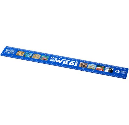Solid recycled plastic ruler with markings available in both inches and centimetres.