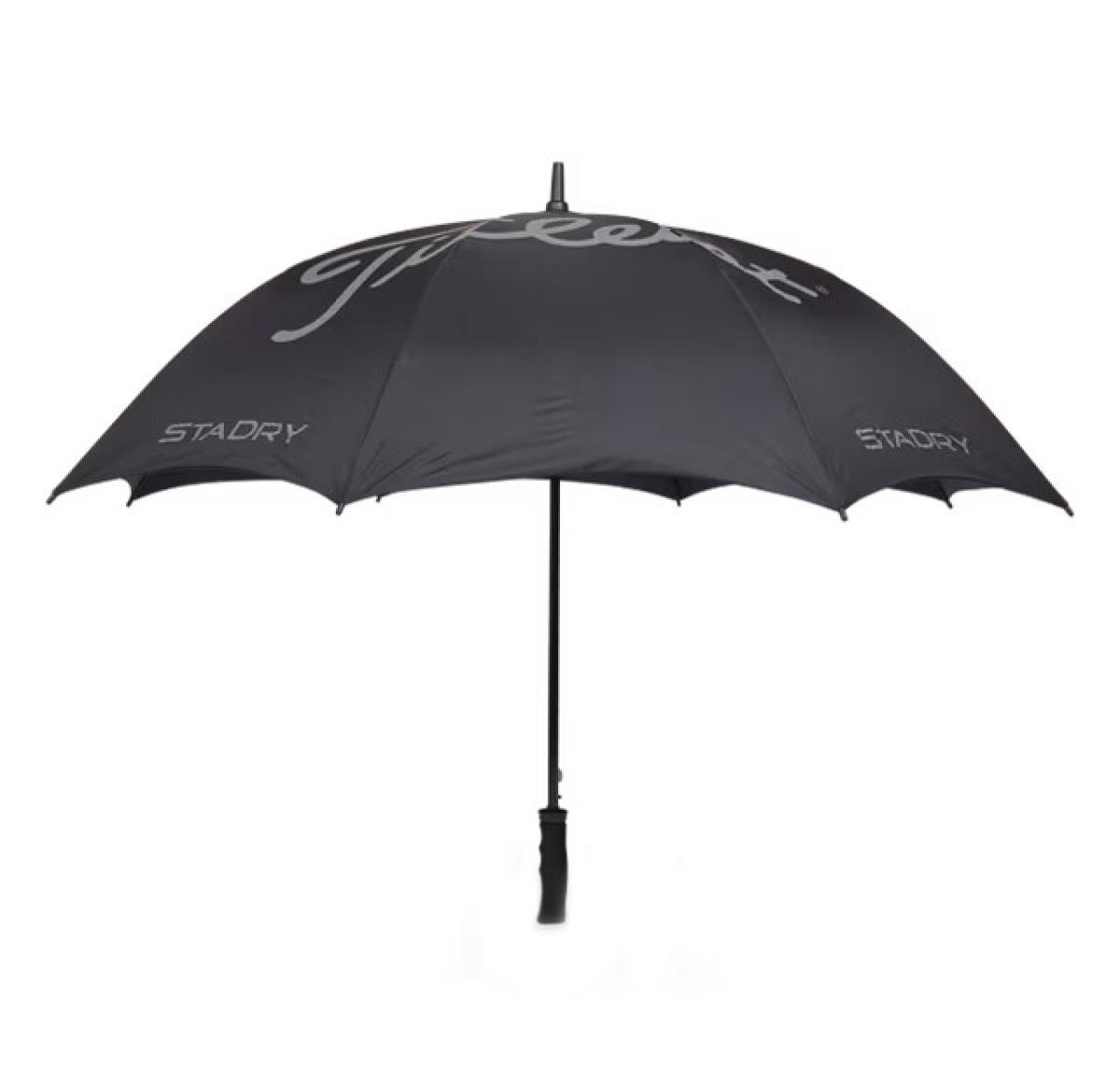Titleist Stadry Single Canopy Umbrella with 1 panel printed with your logo (max. 200mm wide). Please note only 1 panel print available. 64” of coverage. 38" length. Durable StaDry technology. Reinforced struts/ribs for quality and durability. New soft foam handle with debossed Titleist script. Eight panels