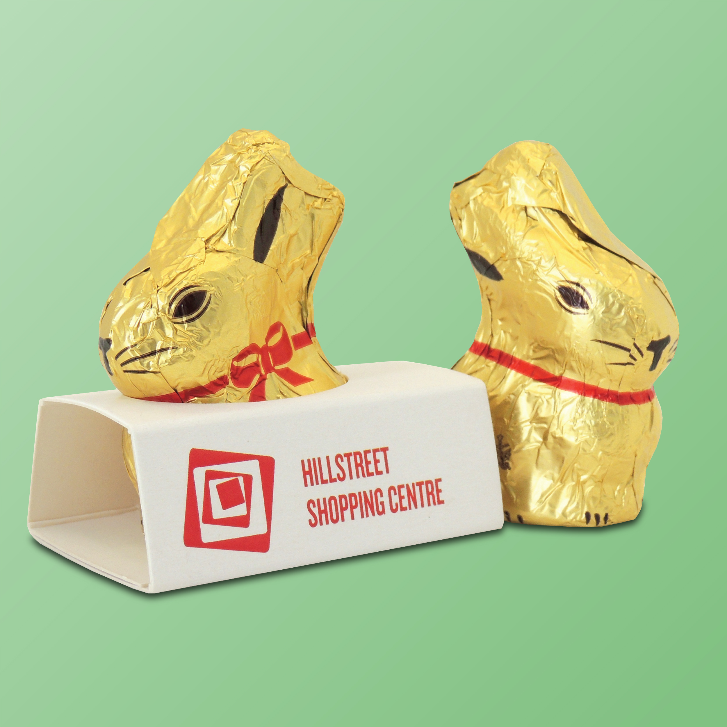 Add a touch of luxury to your seasonal promotions with our Lindt Bunny Mono – a 10g Milk Chocolate Lindt Golden Bunny presented in a bespoke, full-colour printed stand. This charming Easter giveaway is ideal for economical corporate gifts, branded seasonal promotions, hotel turndowns, and Easter-themed events.