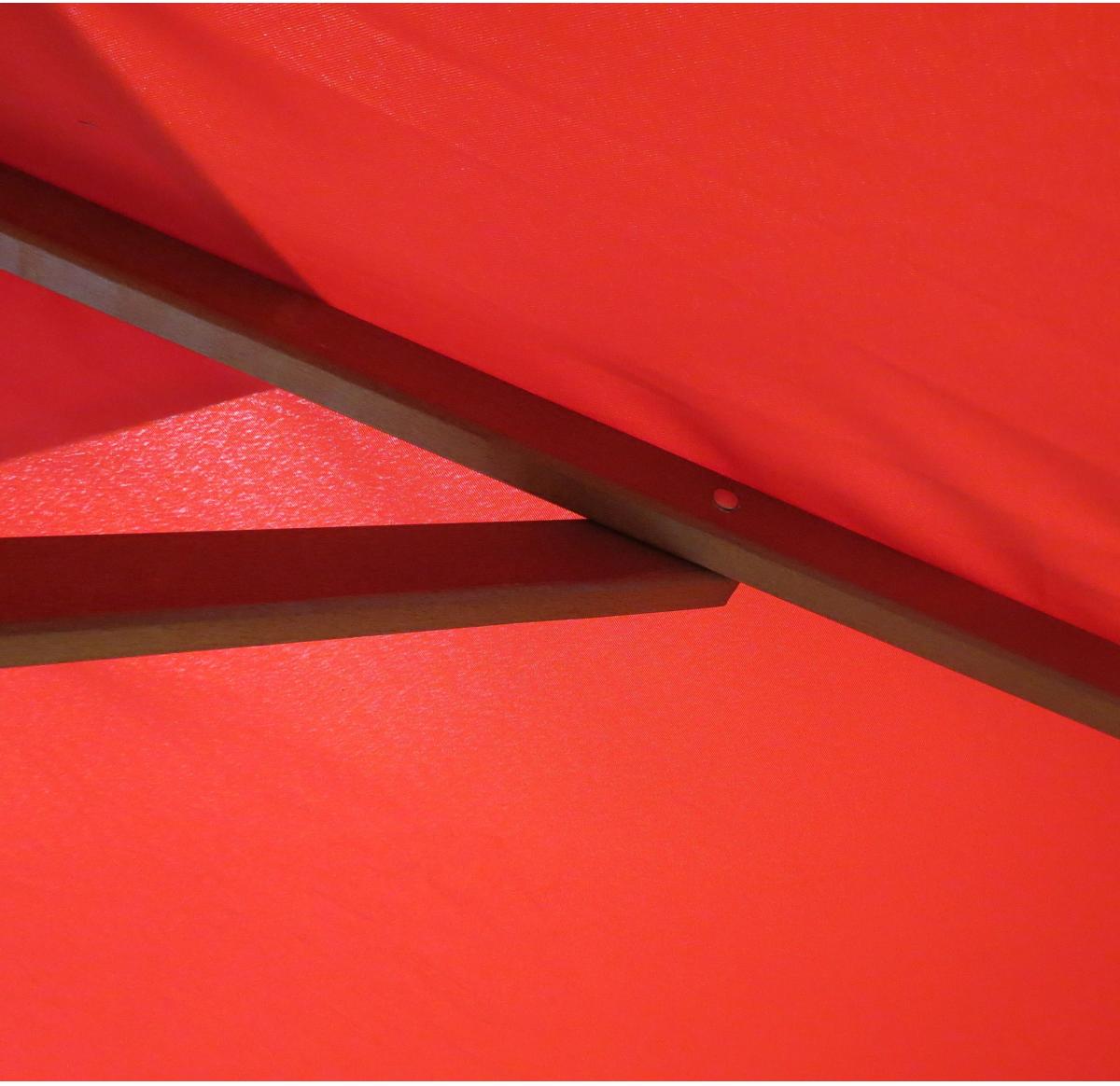 Sizable two metre square parasol with wooden stem Heavy duty wooden stem and ribs with pull cord opening - Canopy made from recycled material