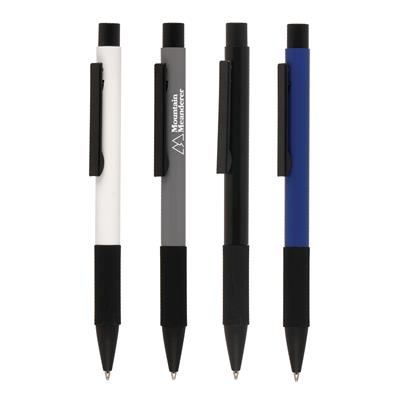 Boost your brand with the Mystic Grip Ball Pen, boasting an aluminium barrel with a metal clip and a silicone grip that enhances comfort and control while providing a non-slip experience. The black trims offer a contemporary feel. This pen is an ideal promotional item for distributing at trade shows and events, given its high-quality materials and ample space for prominently showcasing your company message. This lightweight pen is perfect for sending to clients working from home or on boarding staff. Order yours today and make a lasting impression!