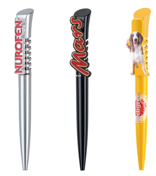 Retactable push ballpoint pen, with delightful custom shaped logo.